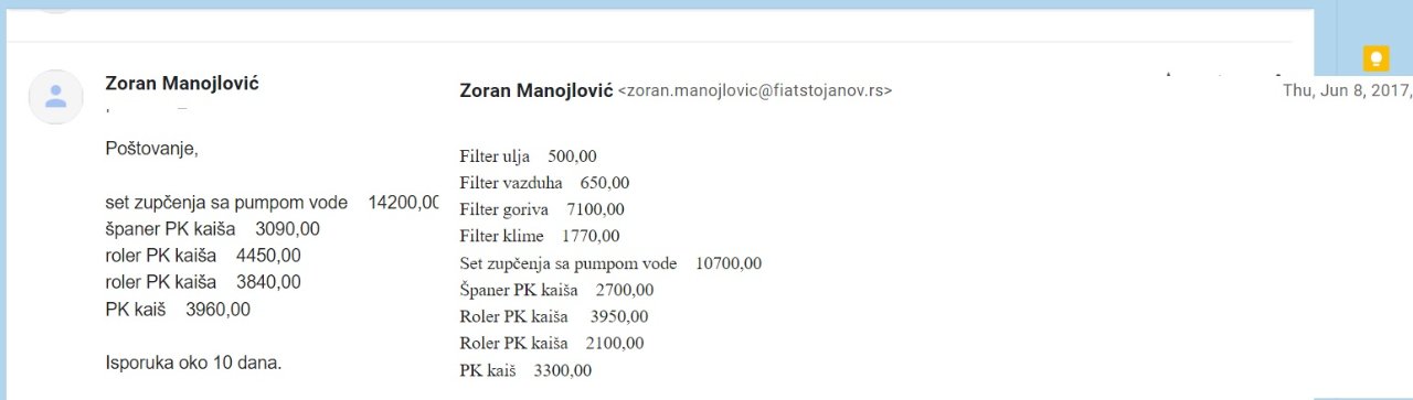 Pitao za OEM Fiat delove za 1.9MJ. Osle cene na gore, 30-40% poneke.
