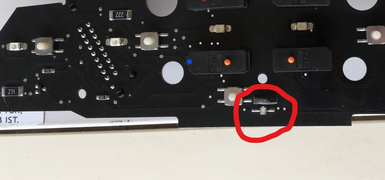 Mislio sam da promenim tu sijalicu (na slici je desno od samog tastera, a ispod je reda u kome su 6 normalnih LED naračndžastih diosa, valjda je oznaka 3528).