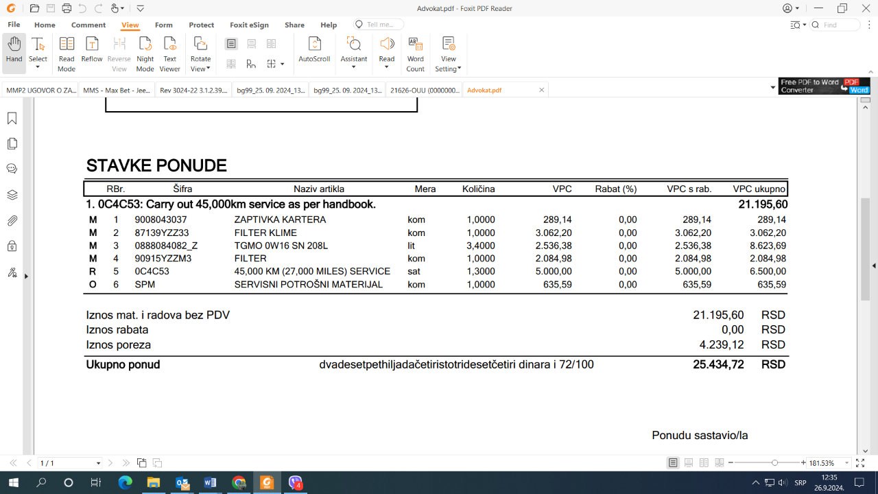 Na kraju posto mi se opet niko nije javljao na telefon, dosao sam samoinicijativno u pola 1 i obradovao se sa racunom - dopunili su mi i antifriz (koji je bio izmedju min i max inace, nije bila potrebna dopuna) za tricavih 2950 dinara bez pitanja. Nisam imao zivaca da se svadjam, platio, uzeo auto i to je to sto se mene tice od dolazaka tamo.