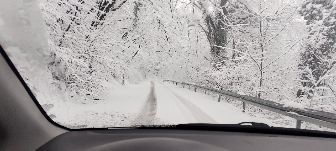 Idem sa klincem do doma zdravlja, po potvrdu. Taman da ubuijemo vreme, a da se ne mlatim kolima. Čari zime, malo snega...