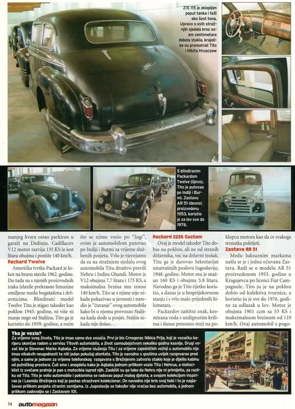 Plavi Cadillac 1976 koji stoji u pozadini je auto iz verovatno poslednje velike nabavke americkih vozila za potrebe svih drzavnih sluzbi koja je bila polovinom 70tih i Tito se u njemu vozio samo jednom. Test i prica o tim kolima objavljena je u jednom broju slovenackog auto magazina iz 1990 godine pa sam skenirao text for your viewing pleasure...