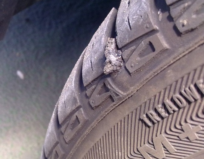 Svratio do Uno servisa. Odradjena opisana rupa, a otkriven uzrok zasto sam i dalje gubio pritisak - jos jedan ekser. Zao mi sto nisam odmah svratio do njih, jer je prilikom stavljanja cepa na prvu, rupa "razbusena" sa ono alatkom, pa se vidi trag.