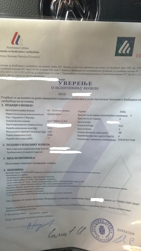 Napred nema ništa, probao sam da se provučem s providnom na šoferci i nije uspelo, samo su tu zaustavili proceduru, rekli mi da to skinem i to je to. Ovo bi bilo isto i za odsjaj, ne bih prošao. Do 15% je propisana refleksija, folije su Llumar, uklapaju se u propis. Vidiš da nisu ni precizirali procenat zatamnjenja, samo "više od 30%". Neki debil to sastavlja, kako treba da izgleda. A propust kod obeležavanja folije je tek genijalan. Dobro da su ukapirali da naglase da je sve iza B stuba inače eto mene opet s folijama svuda