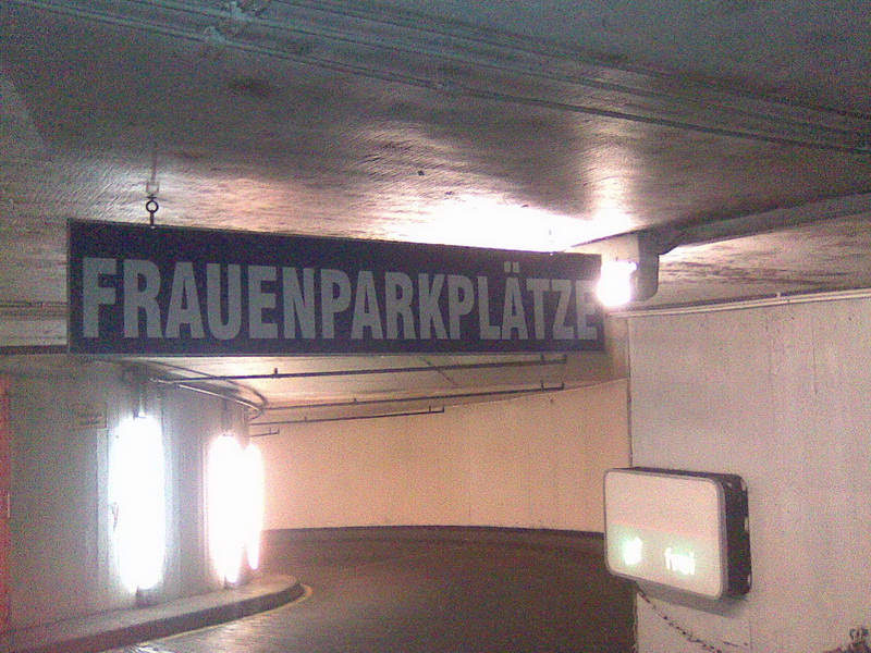 Aprila sam u Nemackoj u Heidelbergu video "zenski deo" na parkingu. Tacnije, tek kada sam odlazio sam skontao da sam auto svo vreme drzao parkiran na "Frauenparkplatze". Cudi me da tako nesto postoji, jer se na zapadu potencira jednakost polova do krajnje gluposti, pa boze moj ko sme da kaze kako su zene losiji vozaci i ne umeju da parkiraju?!