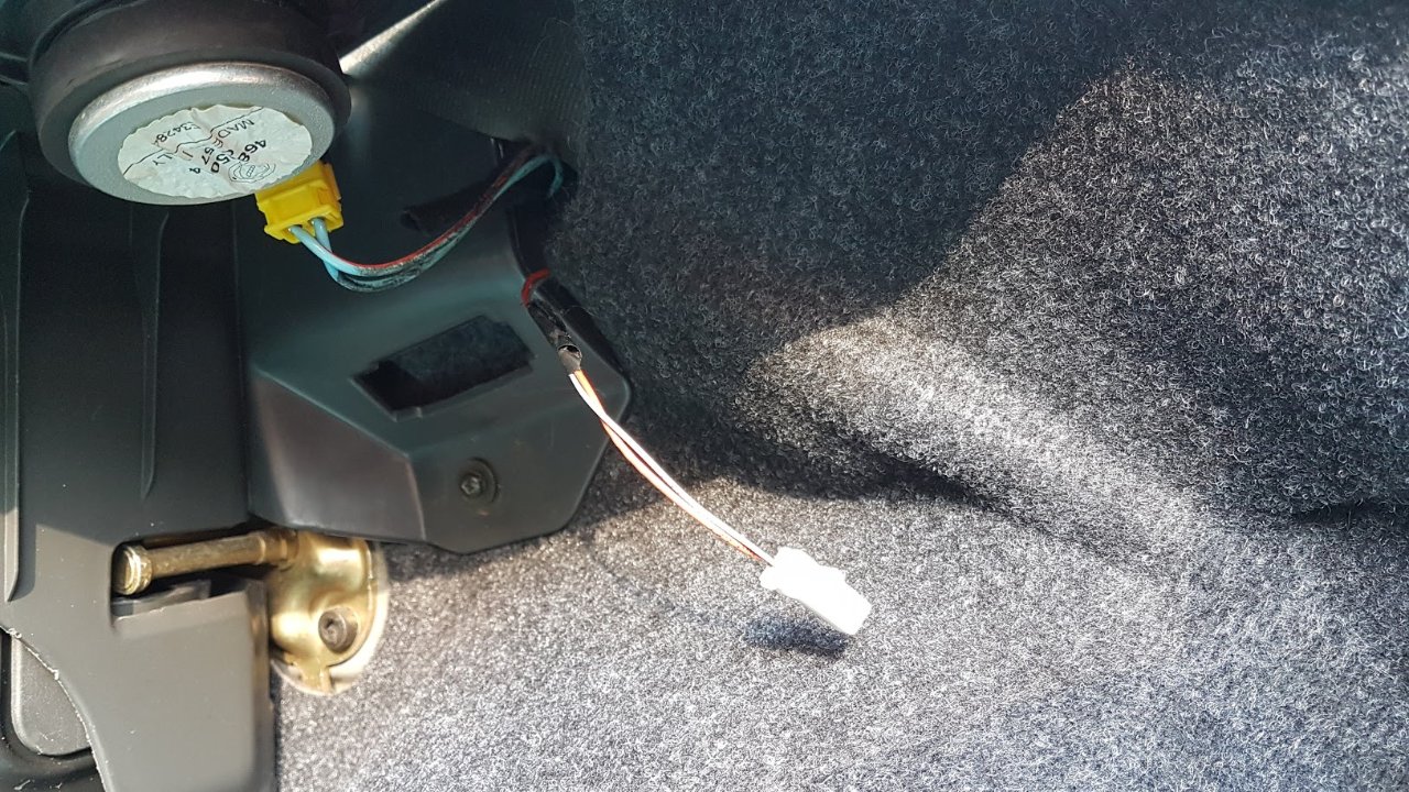 Instalacija za njega odnosno konektor je takođe tu, samo što je zavučen iza tapacirunga. Da bih došao do njega morao sam da odvrnem 4-5 šrafova koji drže onu plastiku sa desne strane u kojoj je zvučnik i na koju se naslanja polica prtljažnika, čisto da bih mogao da zavučem prste iza tapacirunga i potražim konektor...
