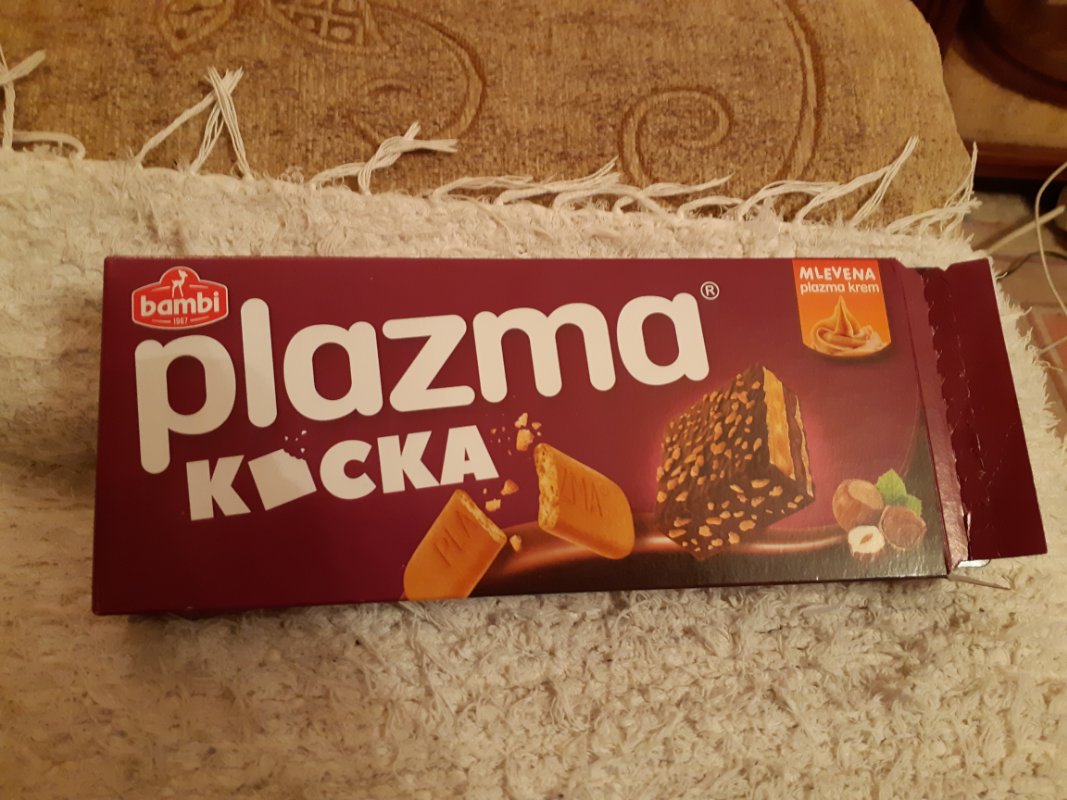 Препорука за нову Плазму са чоколадом и лешницима.У ствари,то је чоколадна наполитанка посута мрвицама Плазме.Амбалажа је идентична Плазми,само је кутија љубичасте боје.У преводу,смазао сам је и бацио кутију.