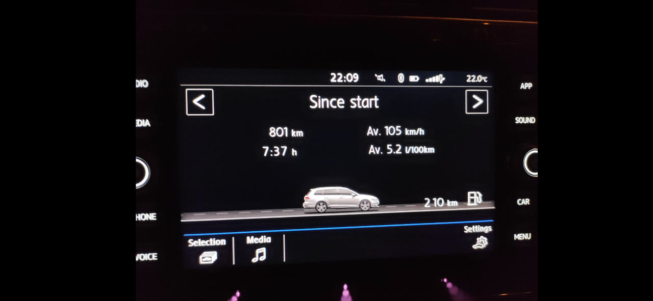 Evo od Minhena do Madjarske, 1.5tsi Golf. Ili je bio povoljan nagib ili vetar u ledja ili oba. Ili gorivo sa steroidima.