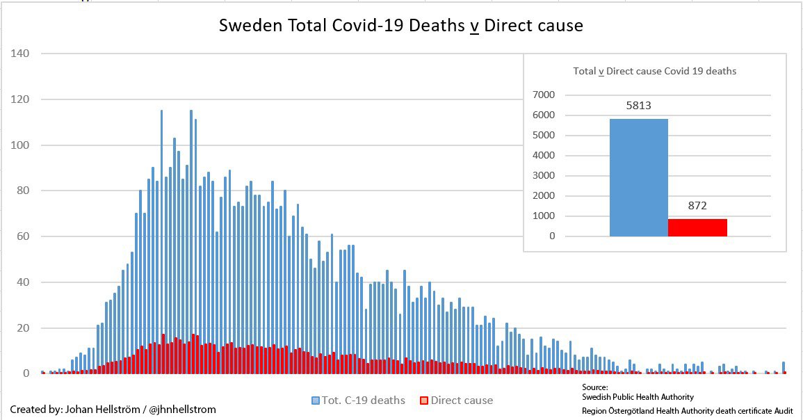 Zanimljiv i odlican podatak iz Svedske: 872 je umrlo od Covida u odnosu na 5813 prijavljenih.