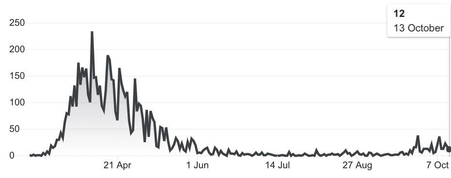 Ali i dalje je dosta dobra slika sto se tice intenzivne nege i smrtnosti - sto objasnjavaju da se mladja populacija zarazila... Prva slika je broj zarazenih dnevno a druga je smrtnost dnevno...