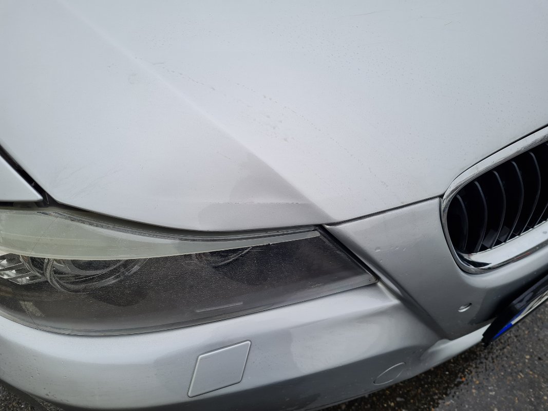 Tesko onda moze bolje jer se slabo vidi svakako, jeste tu napukao lak, samo je ta ivica lima haube malo zalomljena na dole i na pregibu napukao lak, to je sva muka i dilema