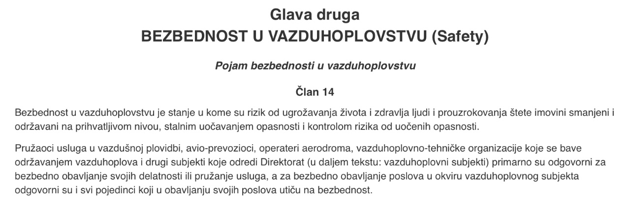 Znaci, on krsi i Zakon koji jasno kaze da je duzan da smanji mogucnost ugrozavanja zdravlja ljudi, posade, i imovine, stalnim uocavanjem opasnosti i kontrolom rizika od iste.