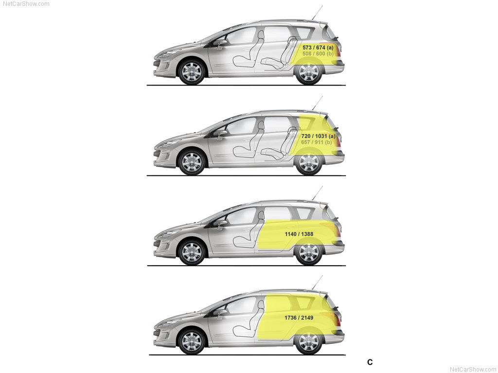 "U odnosu na klasični 308, novi SW ima i za 10 cm veće međuosovinsko rastojanje (umesto 2,61 iznosi 2,71 metra), a to naravno važi za zapreminu prtljažnika. Dok je kod 308-ice hatchback zapremina 348 litara, kod 308 SW ona u osnovnoj konfiguraciji iznosi 674 litara."