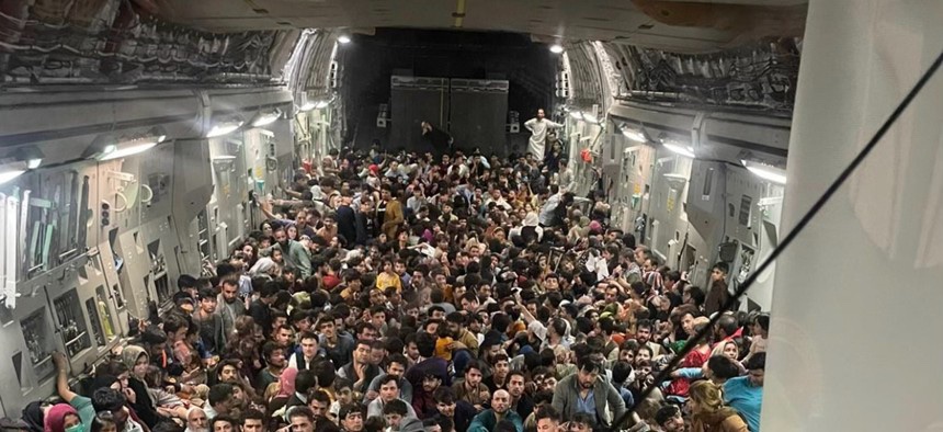 Nedugo nakon poletanja pojavio se snimak iz samog kokpita na kojoj se čuje posada kako u razgovoru s kontrolorima leta procenjuje da je u avion verovatno ušlo 800 ljudi. Ipak, nakon sletanja na lokaciju koja zasad nije objavljena, prebrojali su 640 srećnika, avganistanskih civila koji su uspeli da dođu na sigurno. Posada isprva nije nameravala da pusti toliko ljudi unutra, pogotovo s obzirom da je kapacitet ove letelice, u normalnim okolnostima, manje od 150 ljudi. Veći deo kabine namenjen je, naime, teretu. No, s obzirom na paniku koja je vladala u Kabulu, kad su videli ljude kako se penju iznad poluotvorene rampe, posada je odlučila dozvoliti im put u spas, radije nego ih silom isterati napolje.