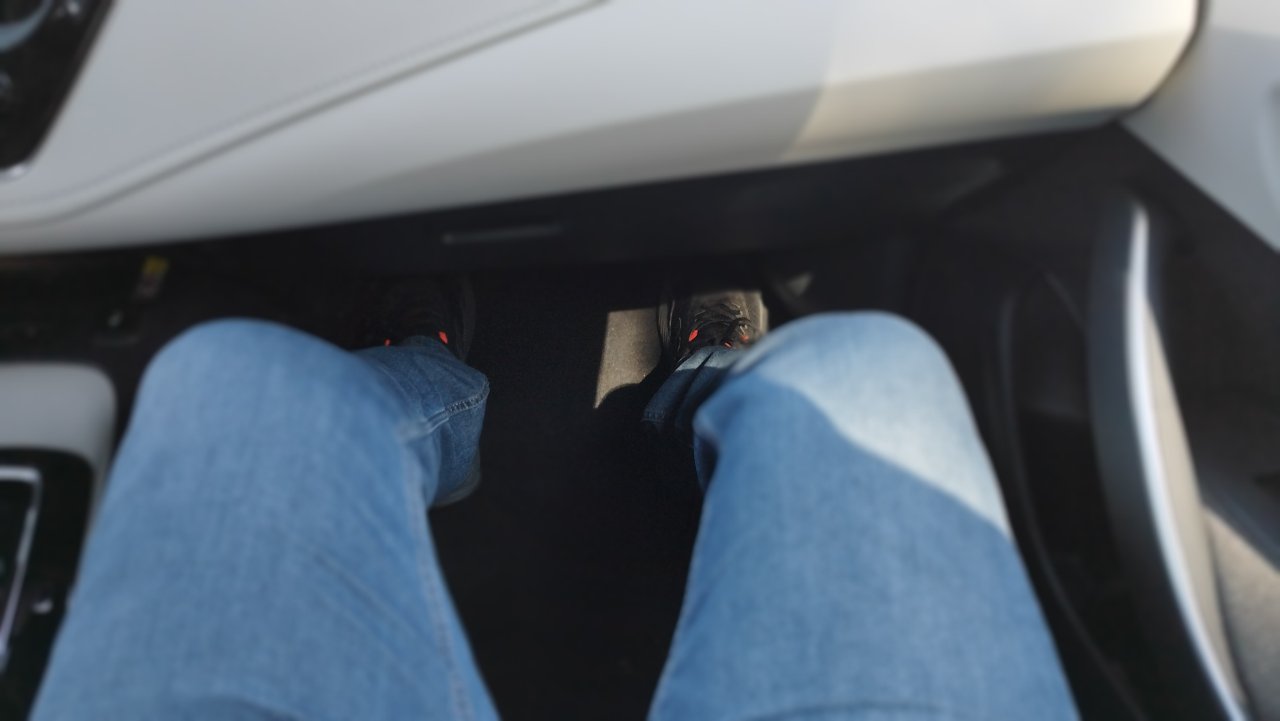 Situacija napred, na vozačkom sedištu sasvim dobra. Ja inače volim da odmaknem sedište, što je u Civicu bilo moguće čak i kad se odmakne na poslednji položaj, ima dovoljno mesta za noge iza mene. Ovde sam malo korigovao i namestio se dva klika od poslednjeg položaja. To otprilike izgleda ovako.