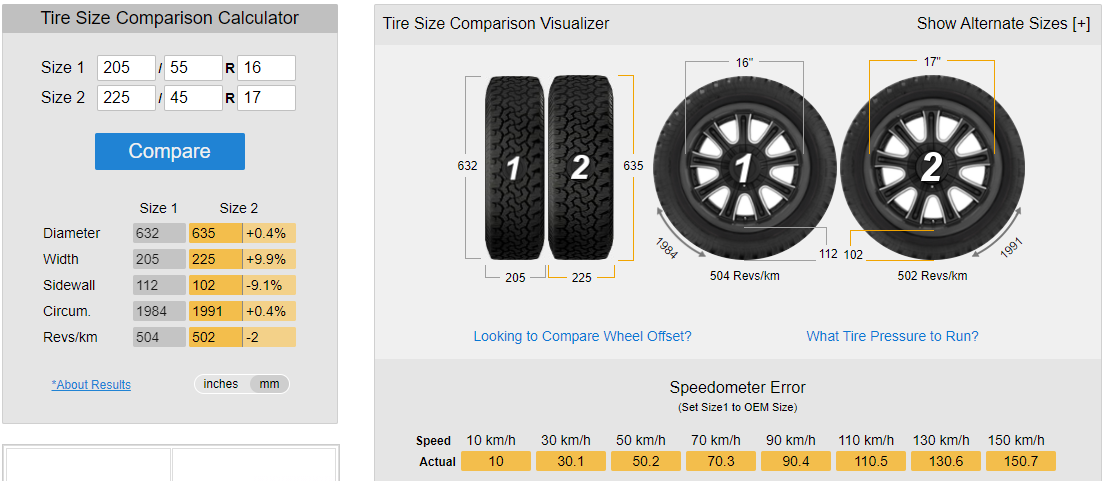 Isti ti je prečnik na 16 i 17, sa 205/55 16 na 225/45 17