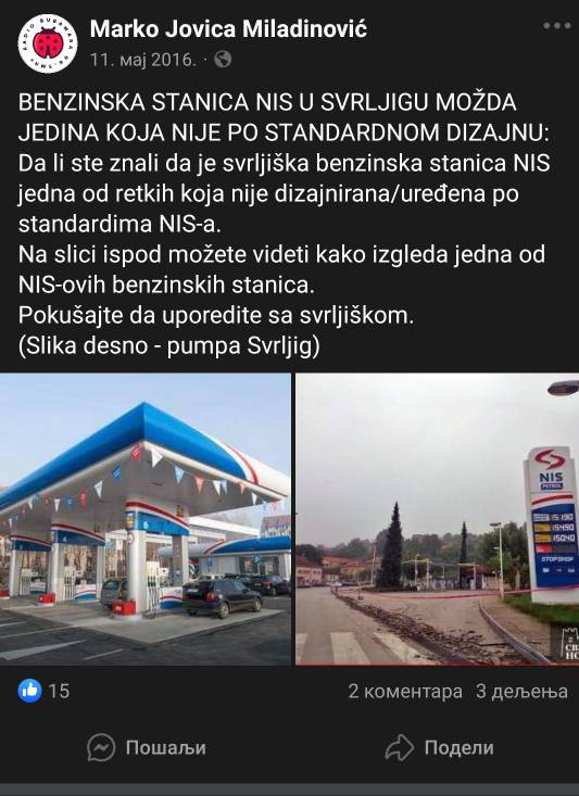 Evo juče sam bio na toj pumpi i čekao sam 15 min da dođem na red, promet imaju i to daleko veći od obližnjih pumpi. Ali šta je tamo neki jugoistok Srbije, to je nešto daleko od Beograda, što bi ulagali... Evo pre par meseci su sredili prilaz pumpi koji je zadnjih 5 godina bio katastrofalan. Bukvalno si morao da se moliš Bogu da se točkovi ne propadnu u odvod za kišu.