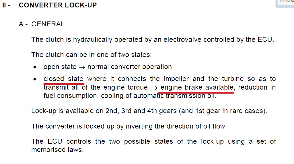 Sto se prenosa snage tice, nisam bas siguran da to funcionise isto na obe strane, vec zato sto konverter ima i statorsko kolo koje preusmerava tok fluida kada motor prenosi snagu na menjac, obrnuto nisam siguran da je efekat istog intenziteta, cak i sumnjam jer se secam sta se desilo u ovom Citrusu. Uglavnom, ako se setim pitacu ove na fakultetu, a pitacu i na jos jednom mestu, mozda i sutra. Evo sta kaze literatura. Francuski DP0 menjac je u pitanju.