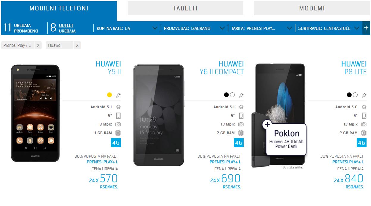 Huawei Y5 II i Huawei Y6 II Compact koštaju 1 dinar u paketu Prenesi Play L
