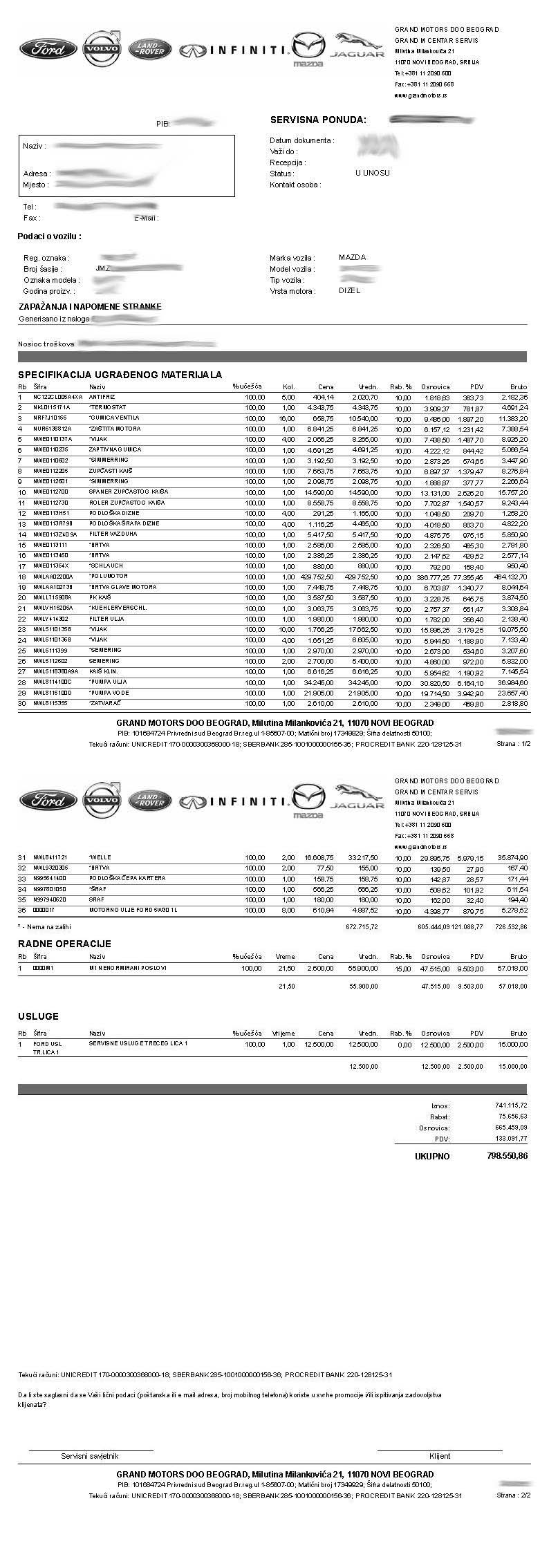 To su sve ok cene u Grand Motorsu. Za Volvo su slicni delovi otprilike jos 100% skuplji nego ovi za Mazdu.