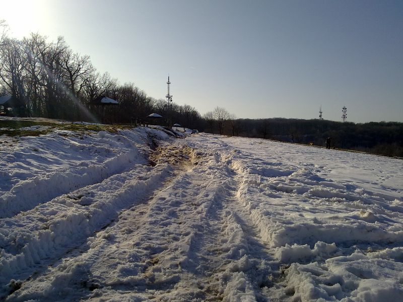 Fruska Gora, samo Zmajevac zelen i okupan suncem, krenuli ka Brankovcu i tu na proplanku sneg na putu do kolena. Malo se grudvali i nazad. Standardno, put od Zmajevca do Iriskog bruka i sramota. Preporucujem put preko Vrdnika kao obavezan ako zelite sacuvati automobil i zivce.