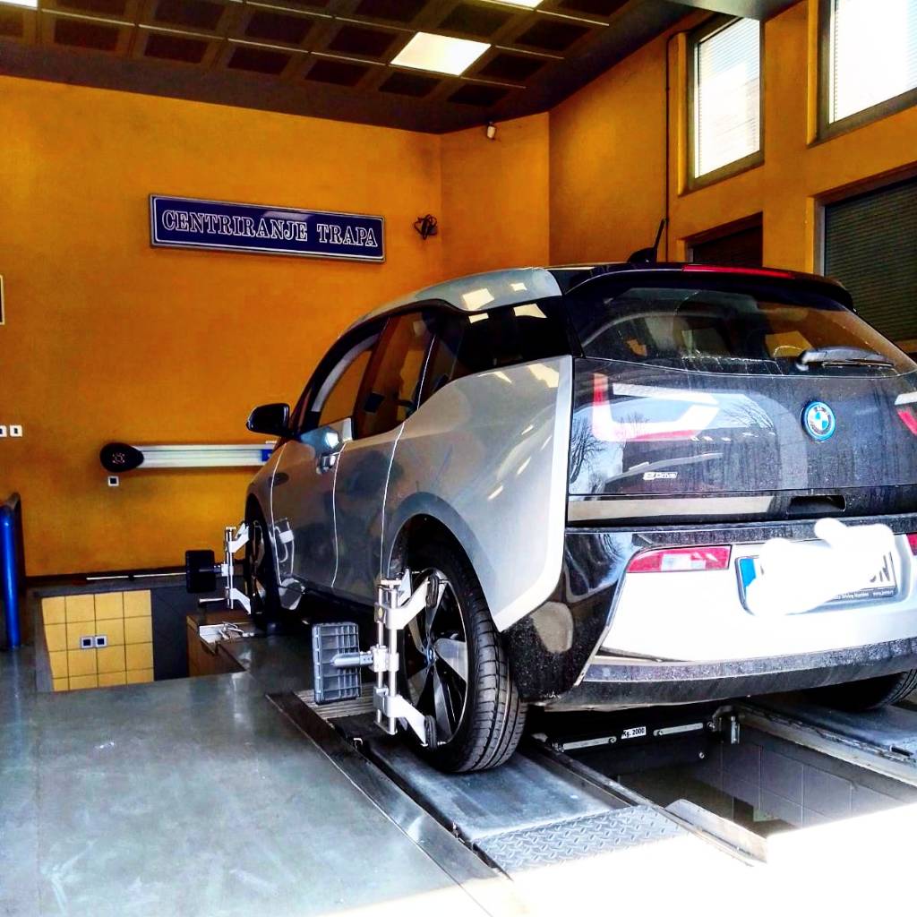 Električni BMW i3 posle ugradnje novih guma na centriranju trapa.