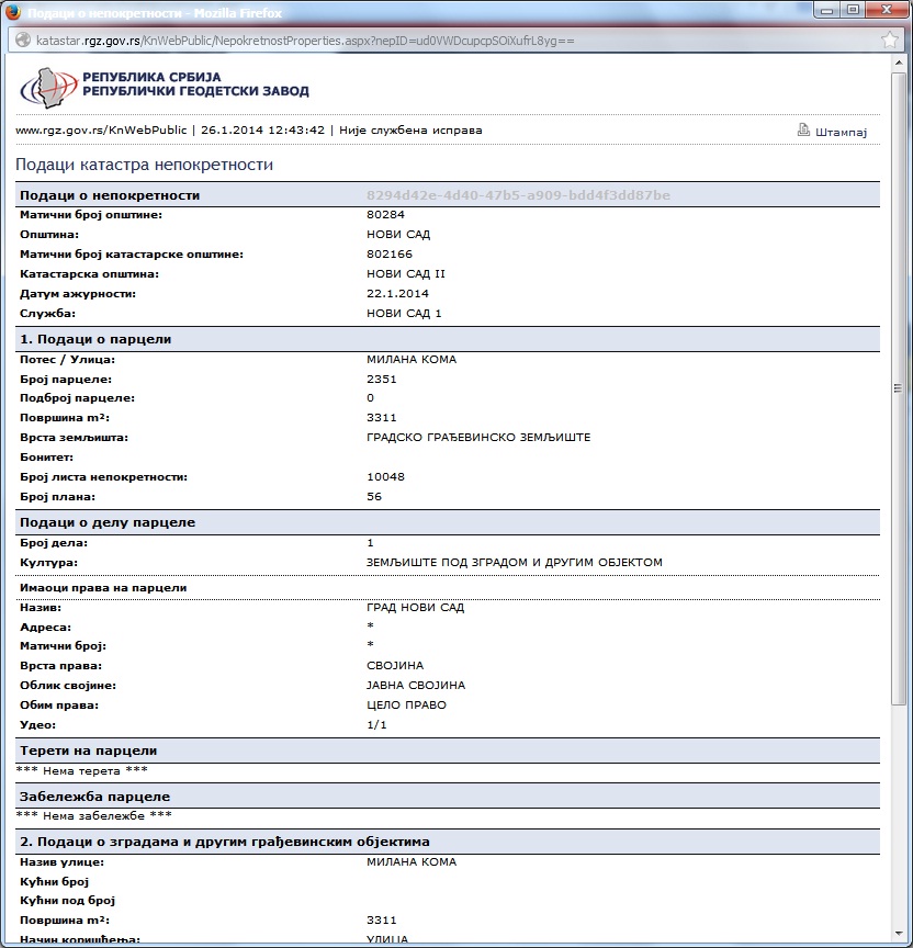 Evo kako je okarakterisana svojina po katastru. Do ograde je korisnikovo, a zemljiste je gradsko drzavno, a od ograde je javno. Prvi izvod iz katastra je za ulicu, drugi za plac.
