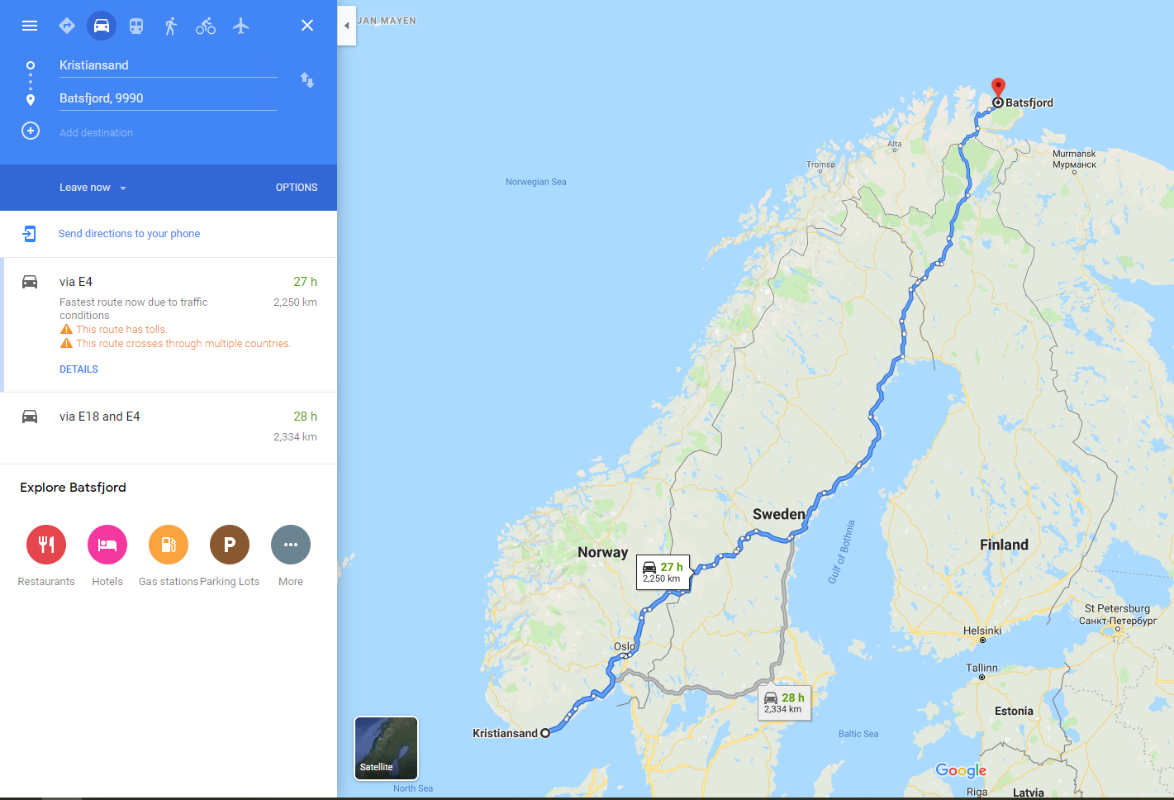 Sad sam malo bolje pogledao kartu, znam da je spomenuo grad Tromso, pa onda odatle još u 3PM, pa tu je on sad.
