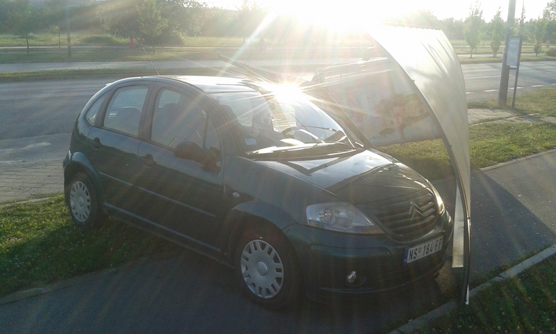 Danas na bulevaru Evrope na raskrsnici sa Branka Bajica lik uleteo na autobusko stajaliste. Sreca nije bilo nikog na stajalistu pa nije niko povredjen. Koliko sam razumeo iz daljine lik je nekog izbegavao i valjda izgubio kontrolu. Samo sam cuo policajca da mu kaze "Bolje da si u njih udario nego sto si ovo napravio" i na kraju "Da si isao 50km/h ovo se ne bi desilo" :D. Taksistu je izgleda malo zakacio ali mislim da nije velika steta.