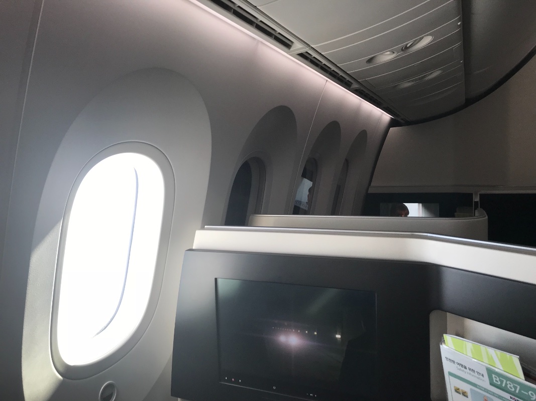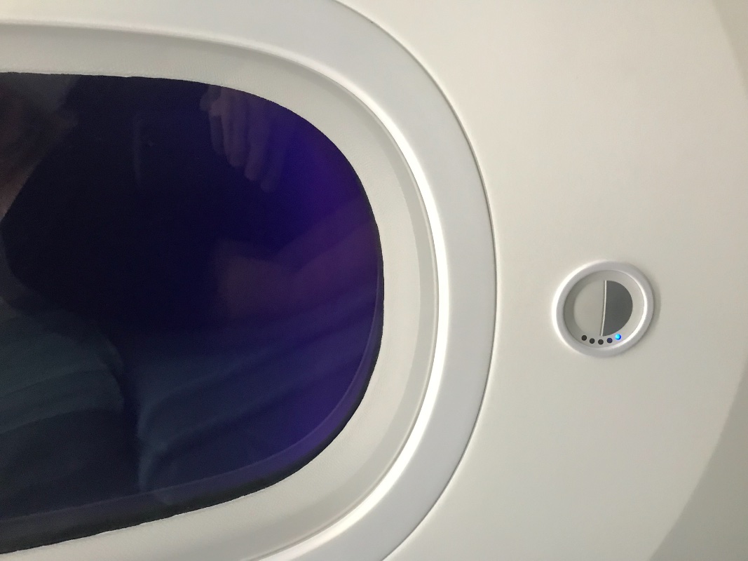 Jedini je avion na svetu sa zamracivanjem prozora na ovaj nacin. Ne koriste se spusti/podigni standardne zavesice. Izmedju dva stakla je gel kroz koji prolazi struja. Povrcanjem struje gel se zatamnjuje.