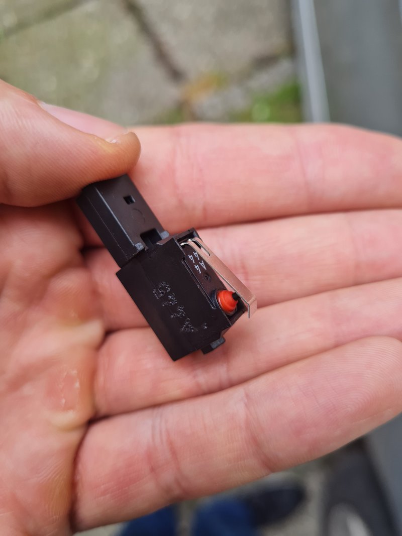 Ja sam posumnjao na mikroprekidač, i kada ovo "dugme" skinem, dobijem ovo, kablić na koji je konektovan mikroprekidač koji je u njegovom ležištu.